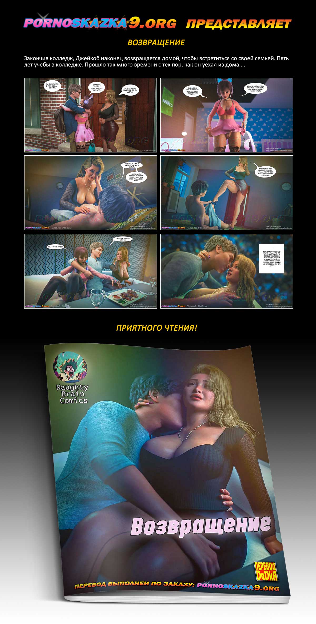 Порно комикс «Возвращение. Часть 1.» Закончив колледж, Джейкоб наконец возвращается домой, чтобы встретиться со своей семьей. Пять лет учебы в колледже. Прошло так много времени с тех пор, как он уехал из дома….